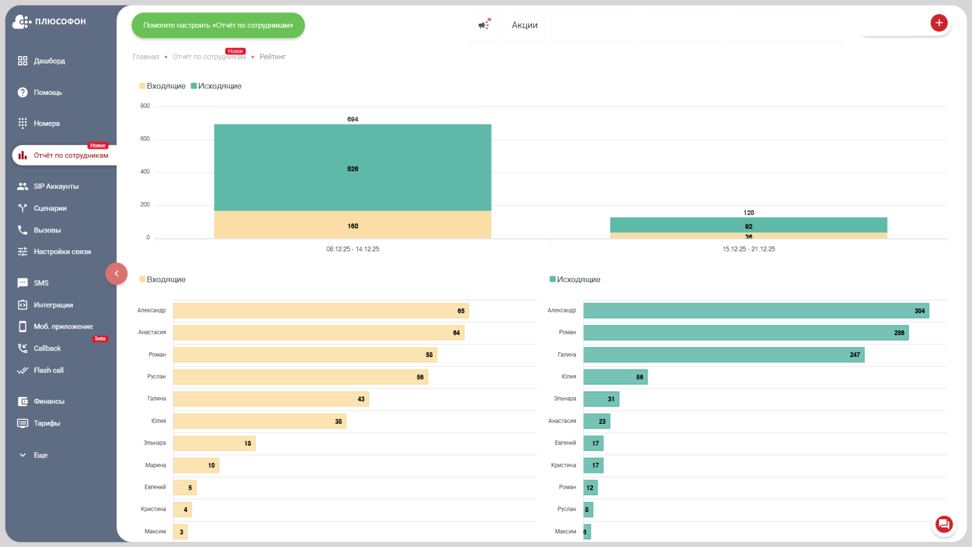 Со статистикой и записью разговоров